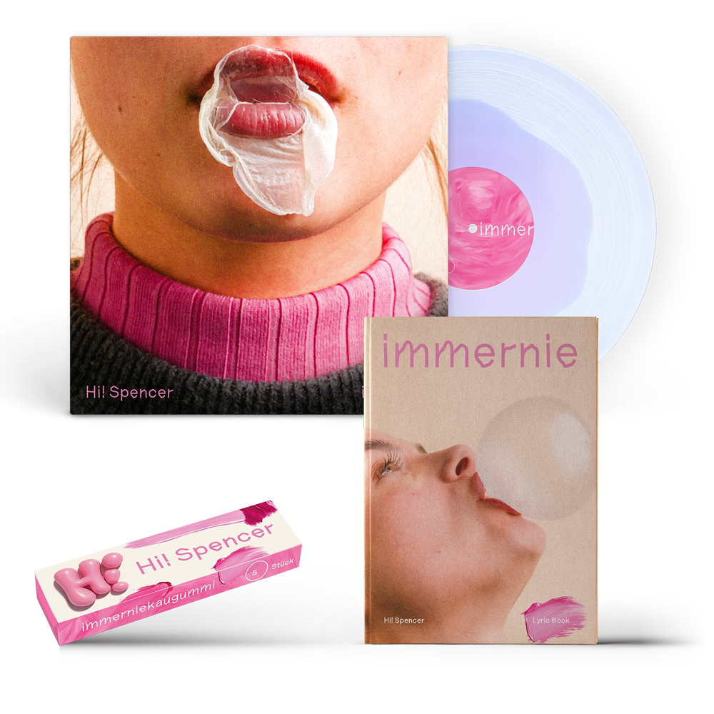 Dazu kommt ein besonderes Extra: das Hi! Spencer „immerniekaugummi“, entstanden in Kollaboration mit hubba hubba – verspielt, absurd und ganz im Sinne des Album-Artworks.